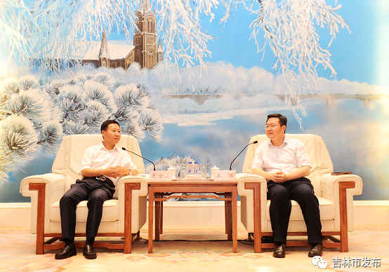 图为市长王路(右)会见京东集团副总裁龙宝正一行