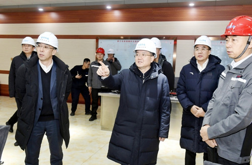 图为市长王吉(中)在舒兰市宏源煤矸石热电有限公司调研节日期间企业安全生产、供热保障等工作情况
