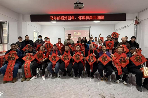 活动现场墨香四溢。书法老师挥毫泼墨,一副副寓意吉祥的春联跃然纸上,“马跃前程步步高”“邻里和睦共安康”等美好祝愿饱含着对新年的期盼,也寄托着对幸福生活的向往。居民们围在桌前欣赏作品,挑选心仪春联,现场气氛热烈温馨。