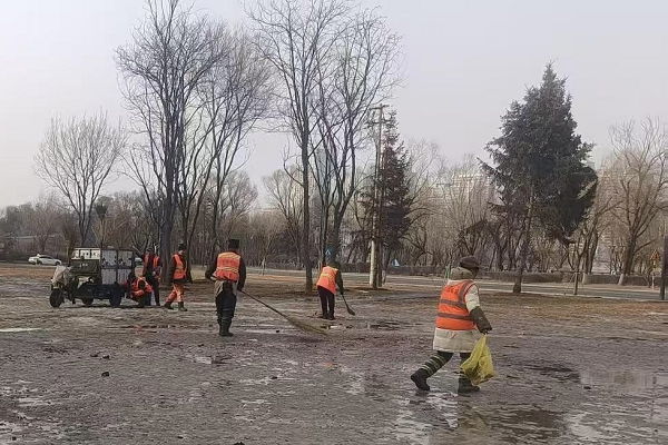 行动中,江南街道提前部署、明确分工,坚持全域覆盖、不留死角。针对路面、楼栋周边、背阴路段残存的积雪残冰,采取“人工清理+融雪消融”相结合方式逐点整治,防止融水结冰带来安全隐患。围绕广场、绿化带、休闲设施周边等区域,分组开展落叶枯枝、杂物垃圾集中清理,严格落实清扫、收集、转运闭环流程。聚焦主次干道、背街小巷、小区庭院等重点区域开展“拉网式”排查,累计清运生活垃圾、枯枝杂草、建筑垃圾及残留冰雪30余吨,整治卫生死角20余处,辖区环境面貌明显改善。