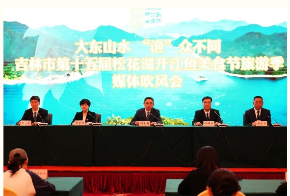 4月26日,“大东山水 ‘渔’众不同”吉林市第十五届松花湖开江鱼美食节旅游季媒体吹风会在北京市举行。吉林市人民政府副市长刘大蔚、吉林市文化广播电视和旅游局局长曹晶莹、吉林松花湖管理局局长刘汉军、吉林市商务局副局长仲伟岩出席发布会并回答记者提问。