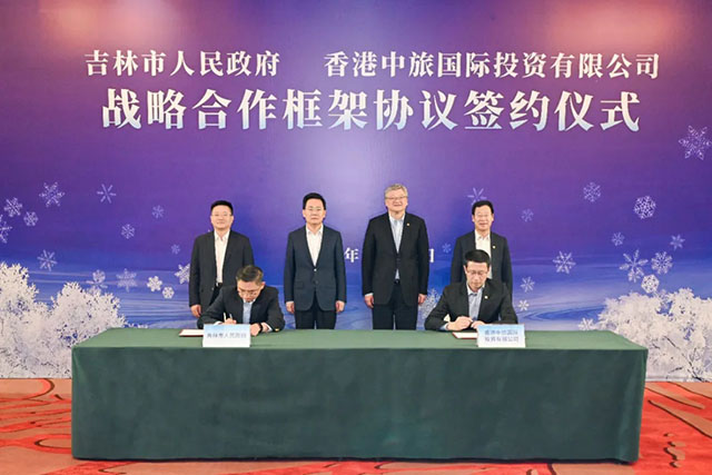 吉林市人民政府与香港中旅国际投资有限公司战略合作框架协议签约仪式现场。
